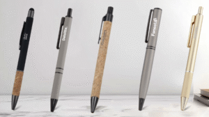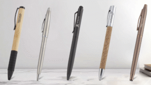 Eco-Friendly Options: Features pens with cork and recyclable materials, supporting sustainability.