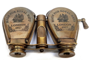 Design: Compact pocket-sized binocular with “Made for Royal Navy London 1917” engraving