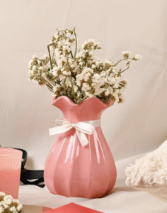 This pink ceramic planter is a charming addition to any table or workspace. With its glossy finish and rounded edges, it’s perfect for small plants, making it a delightful pick for gifting or personal desk styling.