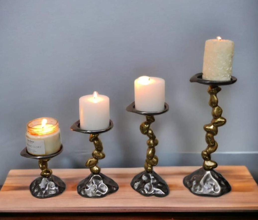 Design: Unique, art-inspired stems with textured bases and balanced platforms for candles or jars.