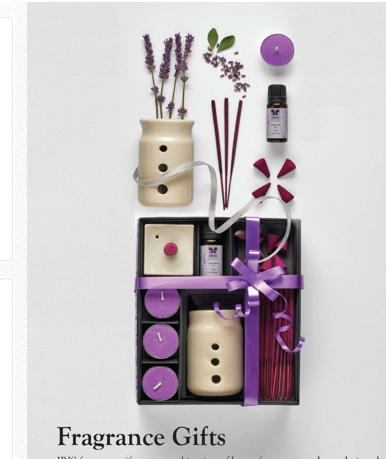 Accessories: Dried lavender stalks, potpourri cones, incense sticks, aroma vial