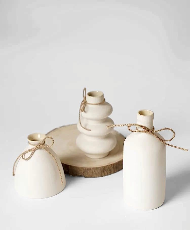 Design: Set of 3 unique shapes – cylindrical, round, and dome with rope accents